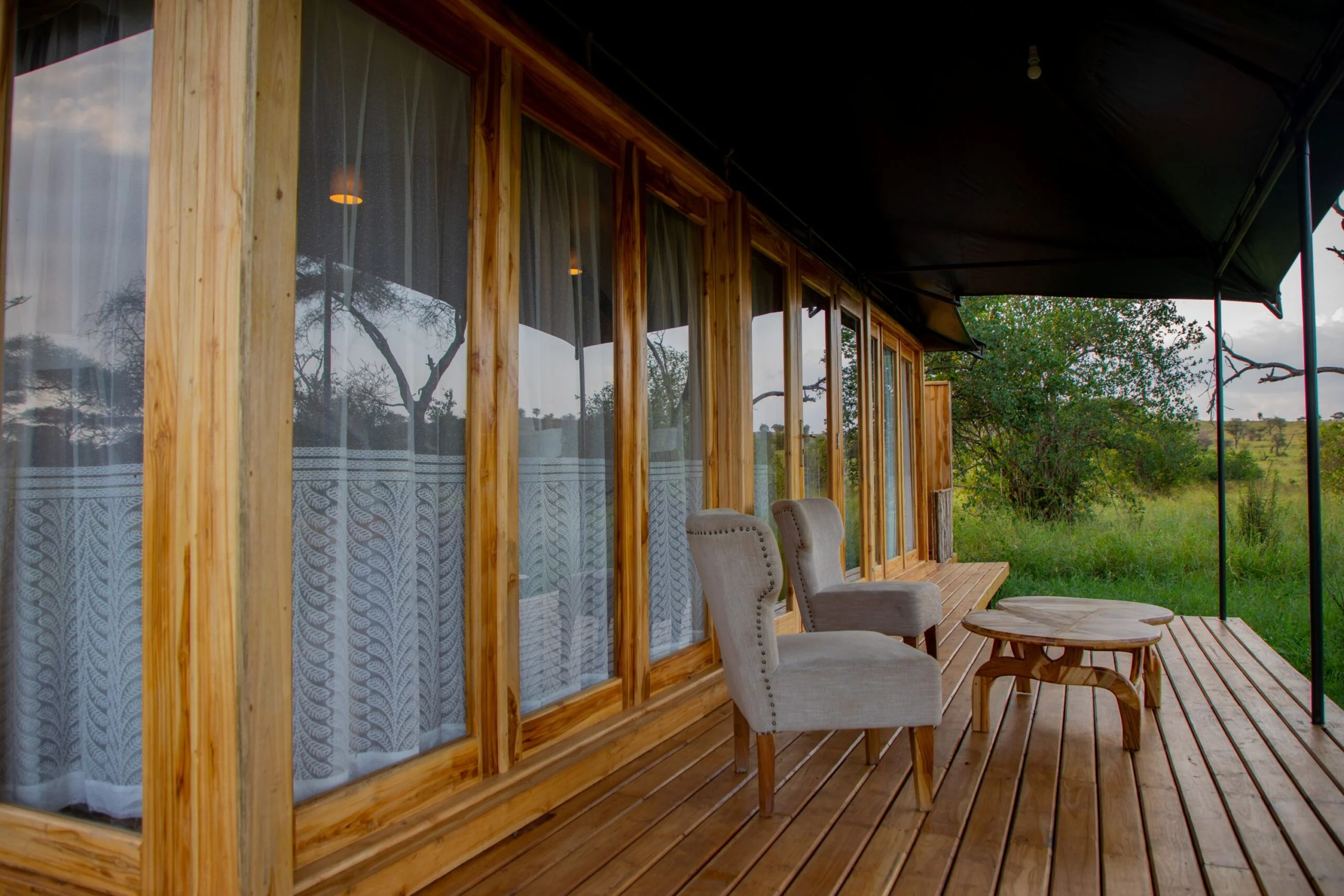 At the main tent, guests will find the reception area, a cozy restaurant serving hearty breakfasts and delightful dinners, a lounge for reading and relaxation, and a bar. Just outside, a welcoming fireplace sets the perfect atmosphere to enjoy the serenity and magic of Serengeti’s star-filled nights